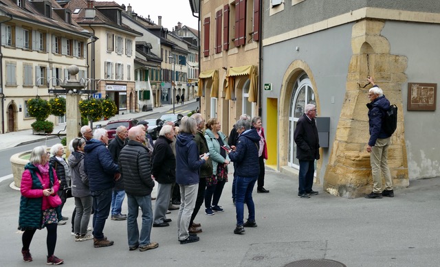 Jürg Schweizer führt gewohnt kundig zu den römischen Mosaiken einer Villa bei Orbe mit anschliessendem Spaziergang durch das Städtchen Orbe (Schloss, Kirche, Altstadt).